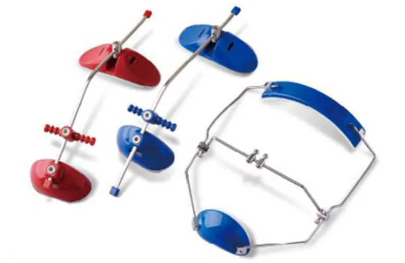 下顎に比べて上顎が前に出ている方に使う装置です。上顎の前への成長を抑えたり上の歯を後ろに引っ張ったりして上下の顎の前後のバランスを整えます。